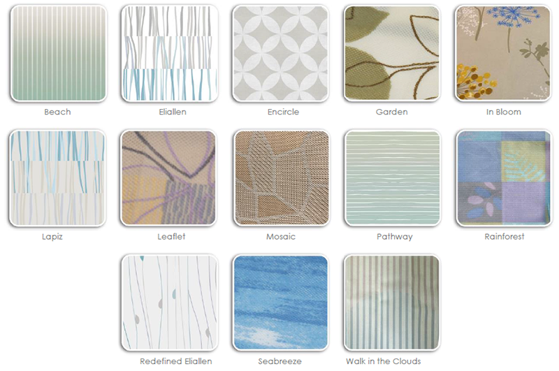 A: Currently we have 4 designer patterns (Mosaic, Garden, Leaflet and Seabreeze) and 6 Architex RX patterns (RX6001-Blossom, RX6001-Floret, RX6001-Seed, RX6001-Stem, RX6006-Dew and RX6006-Oasis).